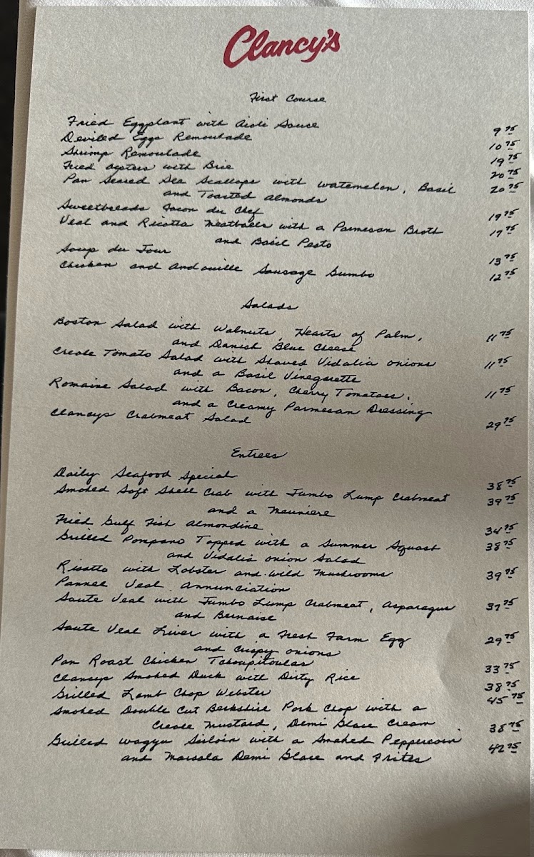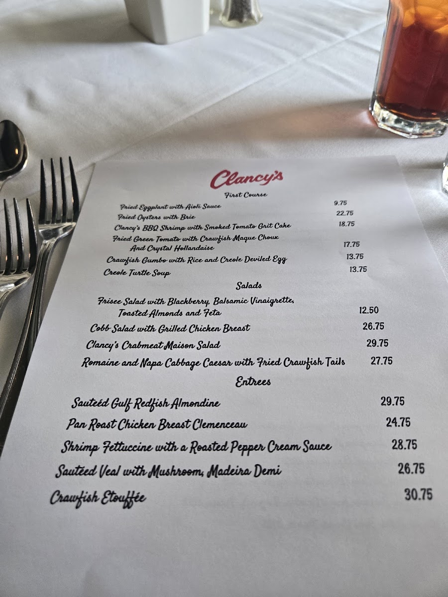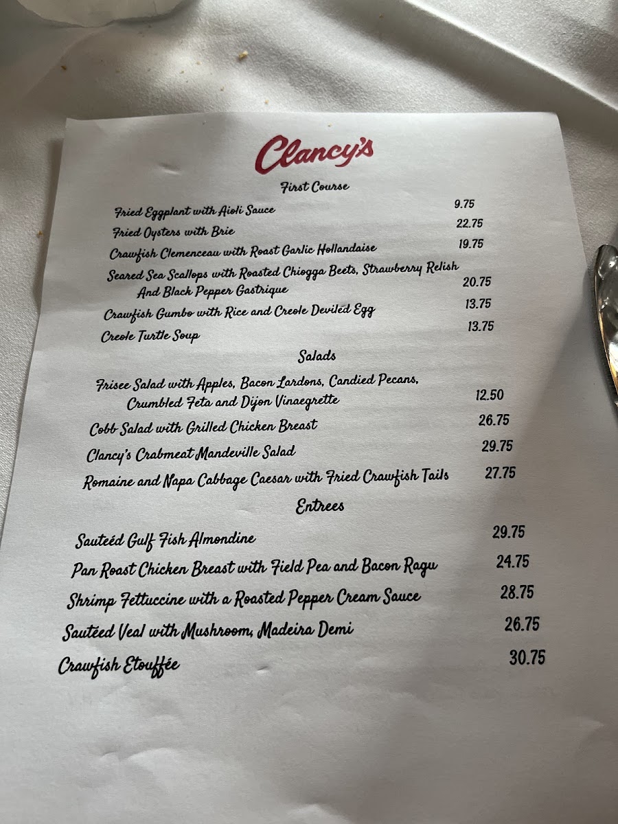 At Clancy's Restaurant, exemplary customer service, delectable dishes, and a warm atmosphere converge to create an unforgettable dining experience. Whether it's a special occasion, a casual meal, or just a craving for authentic Creole cuisine, Clancy's stands as a pillar of culinary excellence in New Orleans, inviting you to return again and again.